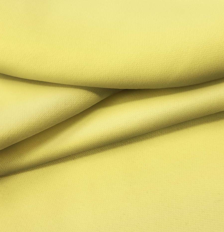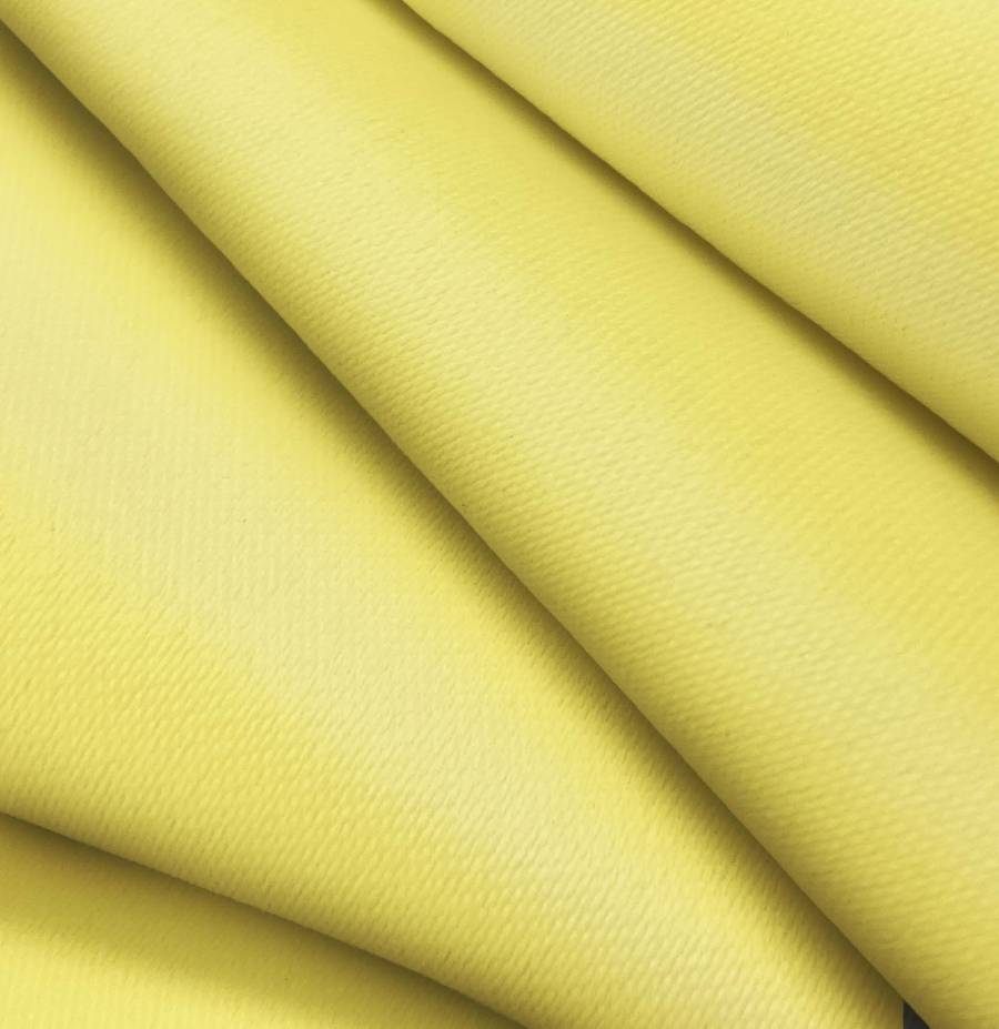 La tela base de esta descripción es la Lona Oscurante - White Out, un tejido técnico de poliéster con un gramaje de 218 gr/m2 y un ancho de 160 cm. El color liso impreso es Amarillo Mostaza, que se obtiene con 6% de tinta Cyan, 11% de tinta Magenta, 70% de tinta Yellow y 0% de tinta Black en el CMYK.