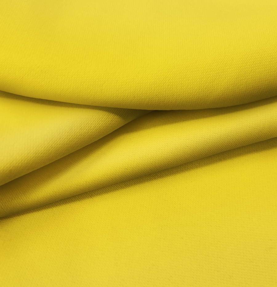 La tela base es Lona Oscurante - White Out, con un color liso Amarillo Oro con un CMYK de 9 25 91 1. Este color evoca calidez y luminosidad, combinándose perfectamente con tonos neutros como blanco o gris.