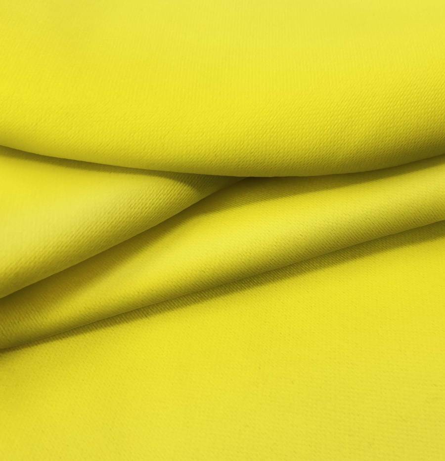 La tela base, Lona Oscurante - White Out, es un tejido técnico de 100% poliéster con un gramaje de 218 gr/m2 y un ancho de 160 cm. El color liso impreso es Amarillo Canario, con una composición CMYK de 11 9 90 0, que transmite energía y alegría. Este color combina especialmente bien con tonos neutros como blanco, gris o negro.