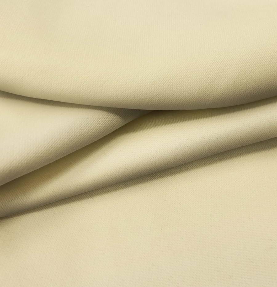 La tela base, Lona Oscurante - White Out, es un tejido técnico de poliéster con un gramaje de 218 gr/m2 y un ancho de 160 cm. El color liso impreso es Amarillo Beige Francés Claro, con un CMYK de 15 20 47 2, que combina perfectamente con tonos neutros y pasteles. El tejido está impreso a una sola cara por impresión digital textil.