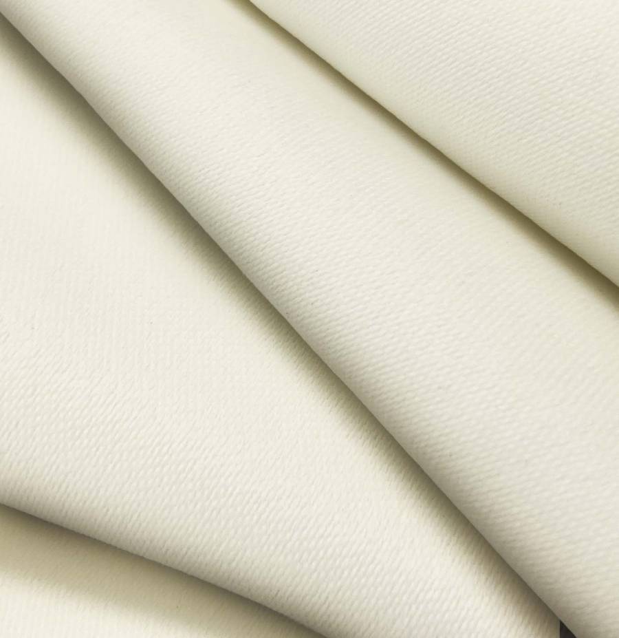 La tela base de esta descripción es la Lona Oscurante - White Out, un tejido técnico de poliéster con un gramaje de 218 gr/m2 y un ancho de 160 cm. El color liso impreso es Crudo/Vainilla, con un CMYK de 4 6 23 0, lo que indica una tonalidad suave y cálida. Este color secundario combina especialmente bien con tonos tierra, verdes y azules claros.