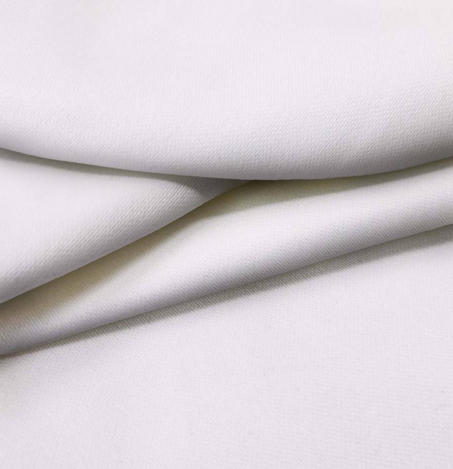 La Lona Oscurante - White Out es una tela base de tejido técnico con un gramaje de 218 gr/m2, color blanco lavanda rubor CMYK 8 12 4 0. Se caracteriza por su textura lisa, rígida y opaca. Este color secundario combina perfectamente con tonos suaves como el gris perla y el rosa pastel.