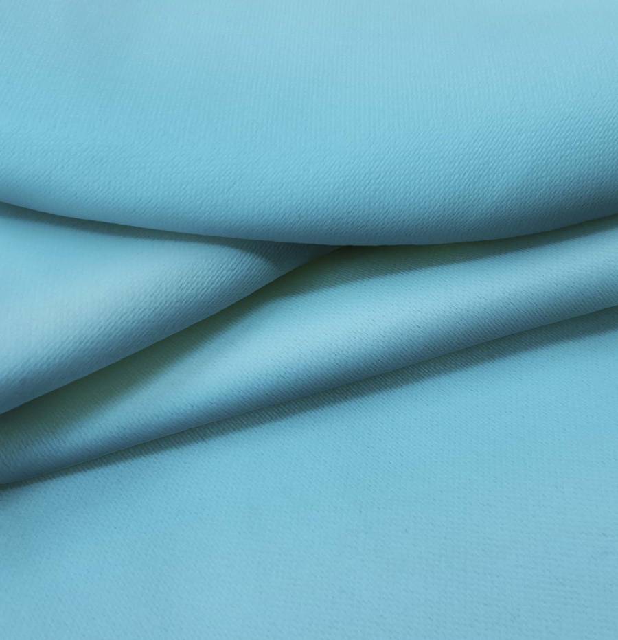 La Lona Oscurante - White Out es un tejido técnico de poliéster con un color liso impreso en tono Azul Hielo glacial, representado por un CMYK de 63 21 17 1. Este color transmite tranquilidad, frescura y elegancia, combinando especialmente bien con tonos neutros como blanco, gris y negro.