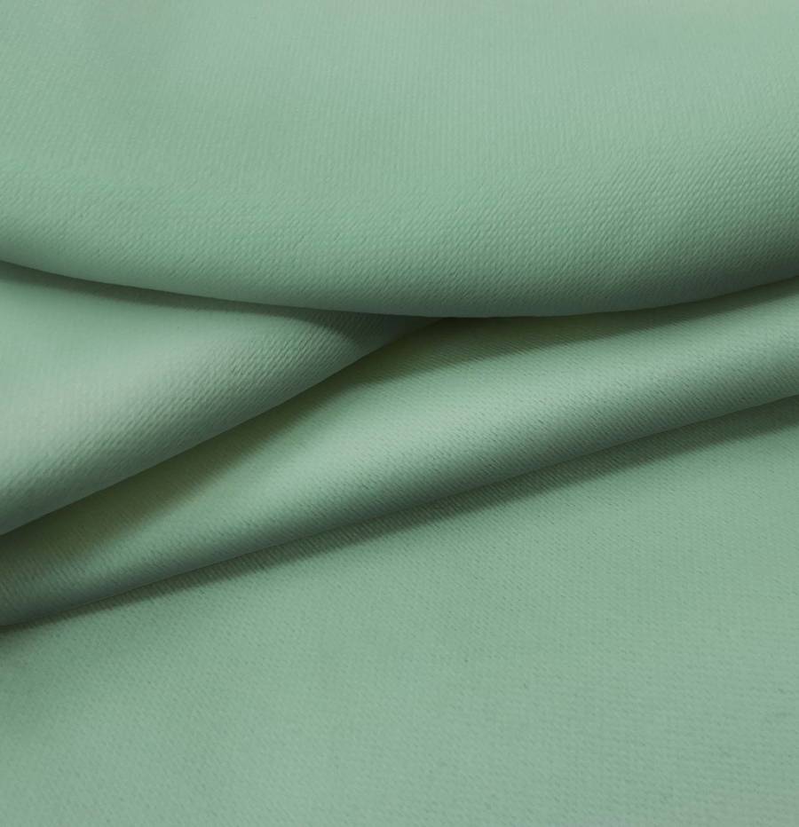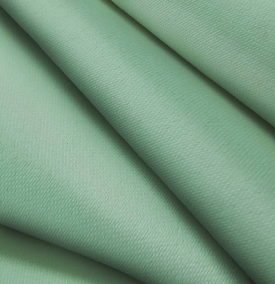 La tela base es Lona Oscurante - White Out. Su color liso impreso es Verde Mar, con un CMYK de 60 27 55 10. Este color simboliza la frescura de la naturaleza y la serenidad del mar, combinando a la perfección con tonos tierra y neutros.