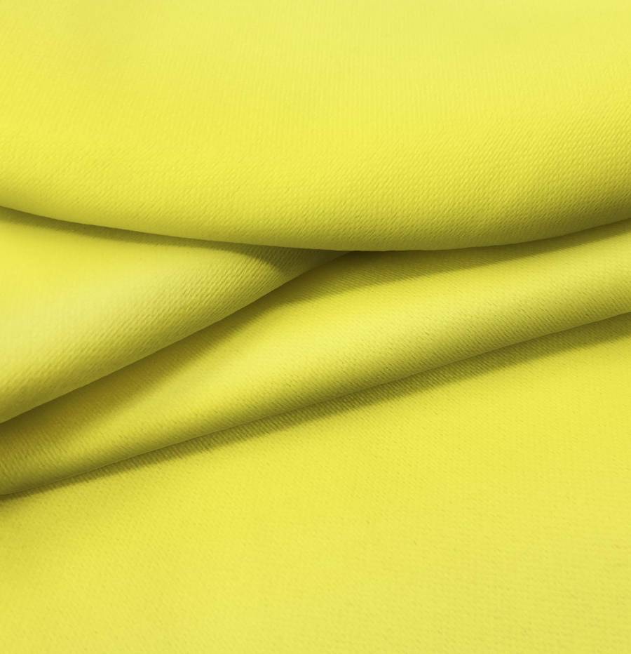 La tela base de esta descripción es la Lona Oscurante - White Out, un tejido técnico de poliéster con un gramaje de 218 gr/m2 y un ancho de 160 cm. El color liso impreso es un amarillo canario, con una combinación CMYK de 9 0 81 0. Este color transmite energía, luminosidad y alegría, perfecto para destacar en cualquier ambiente. Combina bien con tonos neutros como blanco, gris y negro, así como con tonos más intensos como azul marino, verde bosque y rojo.
