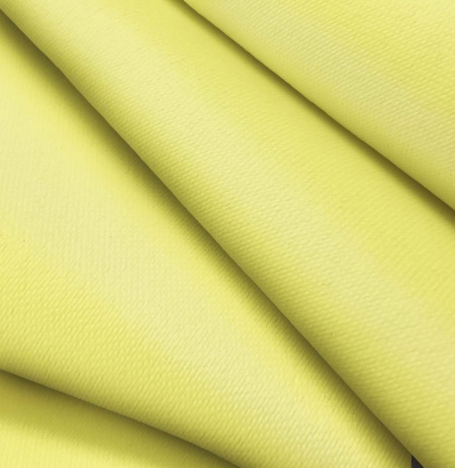 La tela base es Lona Oscurante - White Out, de tejido técnico con composición 100% poliéster, de color amarillo canario con valores CMYK de 9 0 68 0. Este color simboliza la alegría, la vitalidad y la creatividad. Combina particularmente bien con tonos neutros como grises, blancos y negros, así como con tonos más intensos como el naranja o el azul.
