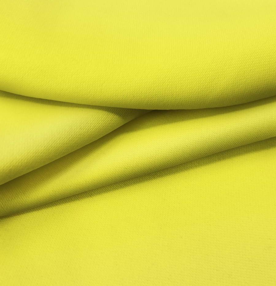 La tela base, Lona Oscurante - White Out, es un tejido técnico de poliéster con un color liso impreso en amarillo canario, reflejado en el CMYK 13 1 85 0. Este color vibrante evoca energía y alegría, combinando perfectamente con tonos neutros como grises o blancos para crear un contraste moderno y elegante.