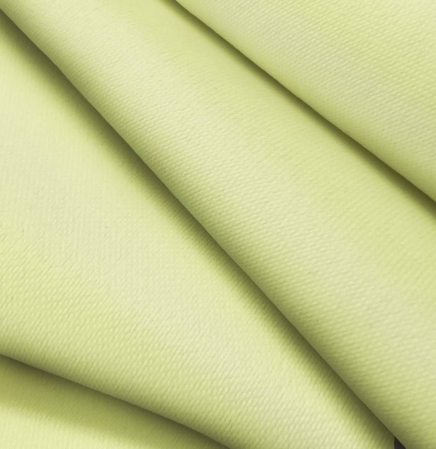 La tela base, Lona Oscurante - White Out, es de color verde pastel, con una combinación de tintas CMYK de 22 2 57 0. Este color suave y relajante se destaca por su frescura y luminosidad, perfecto para crear ambientes tranquilos y armoniosos. Se combina especialmente bien con tonos neutros como blanco, beige y gris, así como con otros colores pastel como rosa, azul y amarillo.
