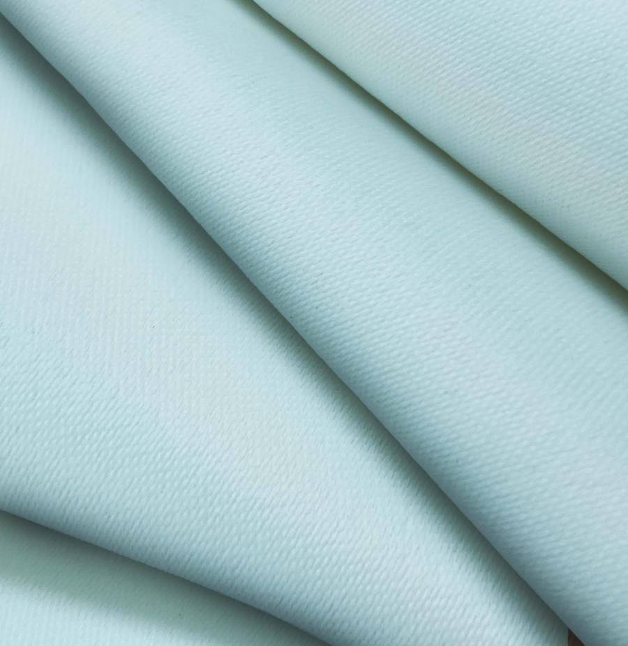 La tela base es una Lona Oscurante de color blanco impreso con un color Azul Claro, reflejando un CMYK de 42 8 16 0. Este color secundario evoca tranquilidad, frescura y serenidad, combinando muy bien con colores neutros como blanco, negro y gris.