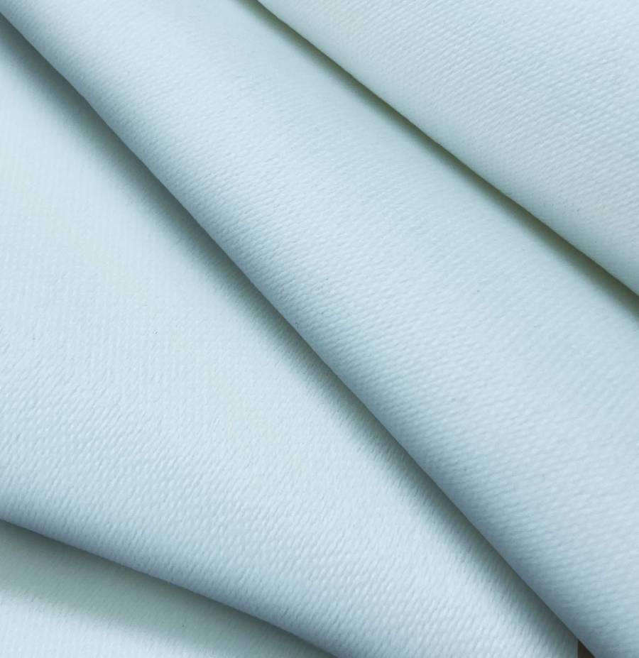 La tela base en cuestión es la Lona Oscurante - White Out, un tejido técnico de poliéster con un gramaje de 218 gr/m2 y un ancho de 160 cm. El color liso impreso es Azul Coral, con una combinación de tintas Cyan: 35, Magenta: 6, Yellow: 8, y Black: 0, lo que resulta en un CMYK de 35 6 8 0. Este color secundario Azul Coral representa la calma y la creatividad, combinando la profundidad del azul con la energía del coral.
