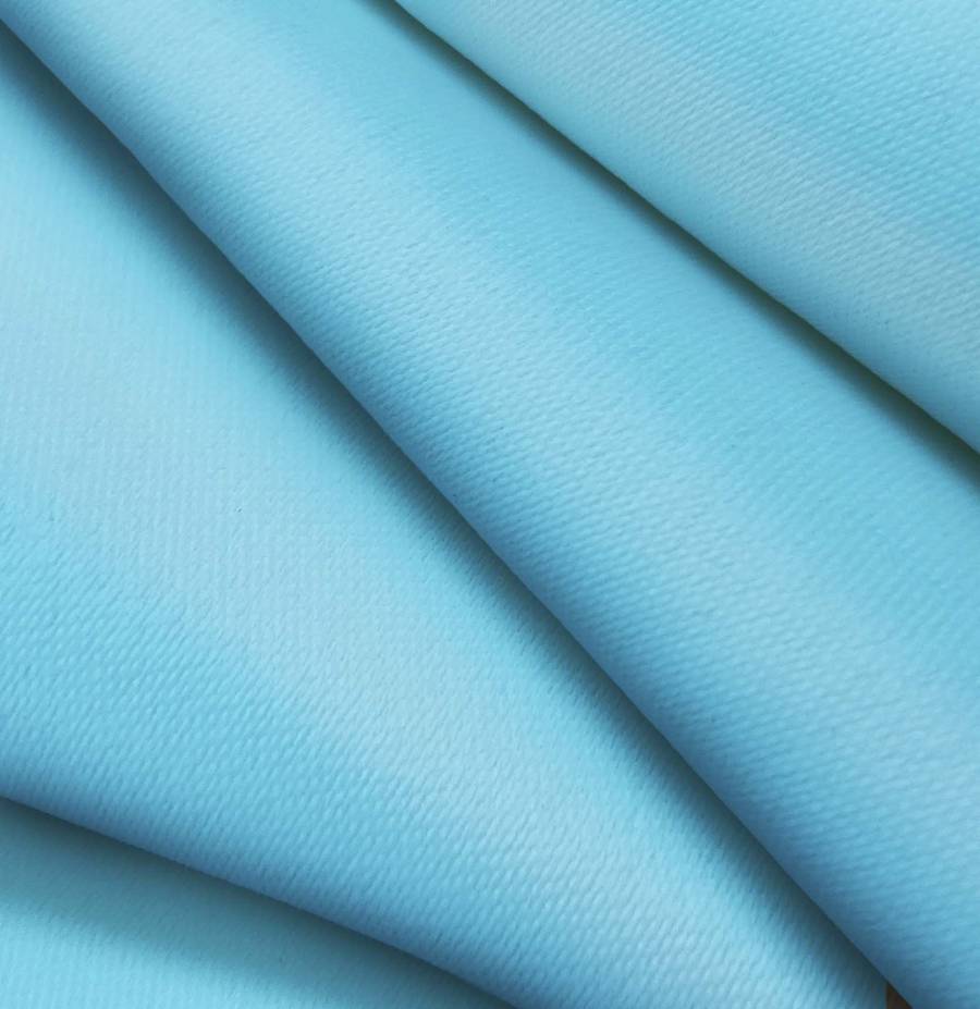 La tela base que utilizamos es Lona Oscurante - White Out, un tejido técnico de poliéster con un gramaje de 218 gr/m2 y una anchura de 160 cm. El color liso impreso es Azul Iceberg, con una combinación de tintas CMYK de 59 14 4 0, lo que le confiere un tono azul claro y fresco. Este color secundario combina especialmente bien con tonos neutros como blanco, gris y beige.