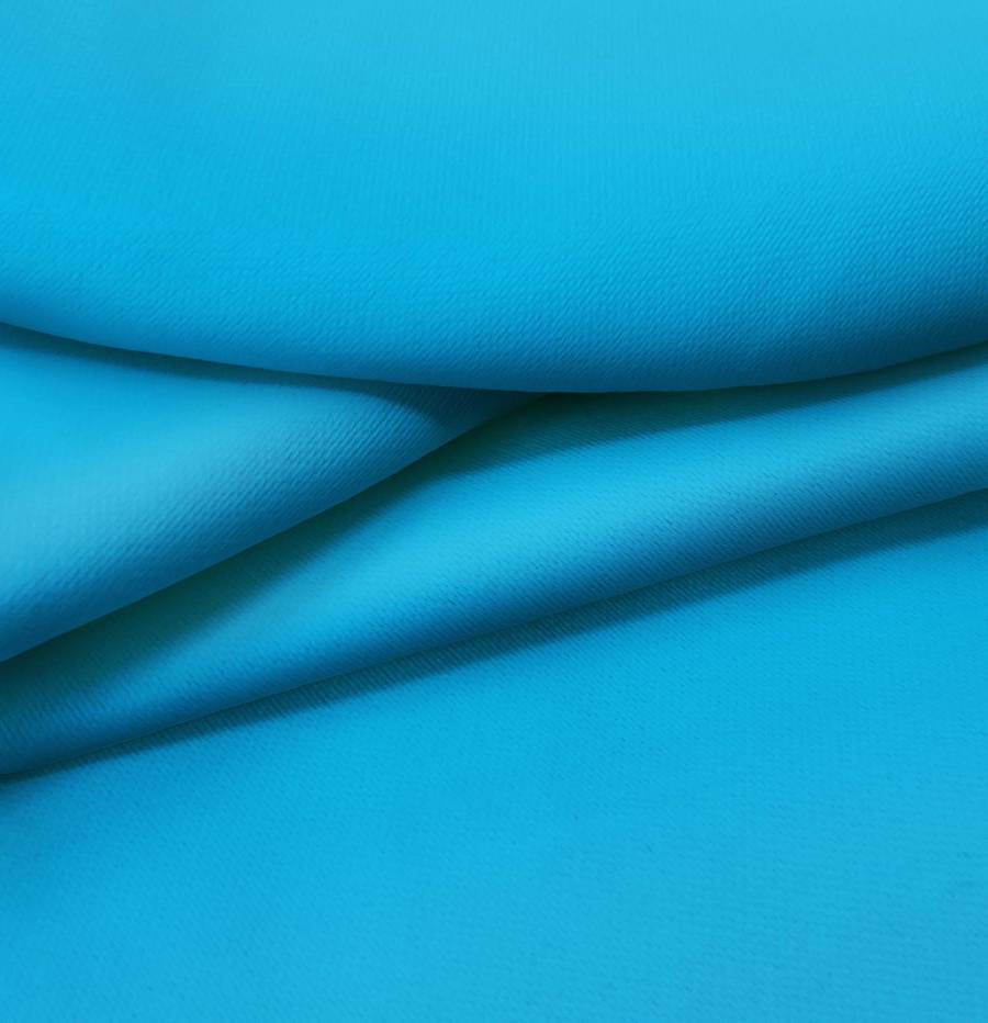 La tela base es Lona Oscurante - White Out, un tejido técnico de poliéster con un gramaje de 218 gr/m2 y un ancho de 160 cm. El color impreso es Azul Mariposa, con un CMYK de 78 28 0 0, lo que le confiere un tono azul intenso con matices violeta. Este color combina especialmente bien con blanco y tonos neutros.