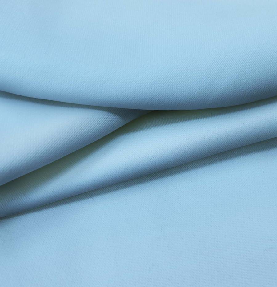 La tela base utilizada es Lona Oscurante - White Out, de tipo Tejido Técnico y con composición 100% Poliéster. El color liso impreso es Azul Iceberg, con una combinación de tintas Cyan 52, Magenta 18, Yellow 2 y Black 0 (CMYK: 52 18 2 0). Este color secundario simboliza la calma, la confianza y la frescura, y combina especialmente bien con tonos neutros como el blanco, gris o beige.