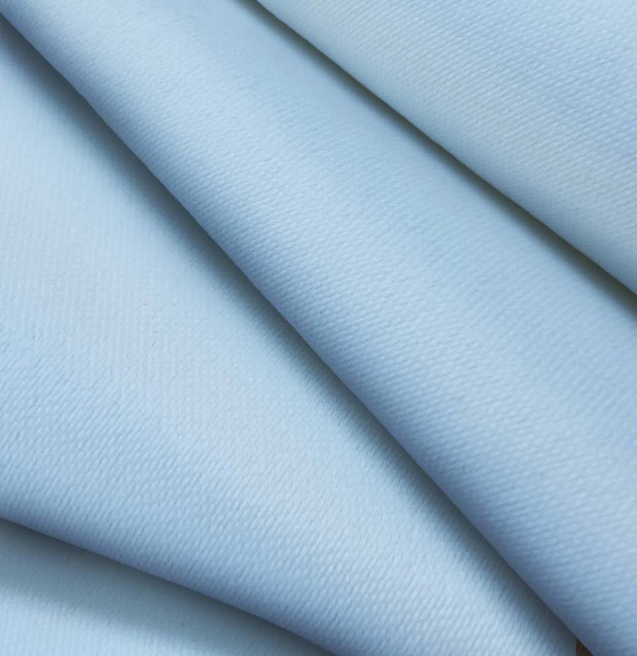 La tela base es Lona Oscurante - White Out, con un color liso impreso en tonos Azul y Violeta claro, reflejando un CMYK de 48 22 3 0. Este color secundario simboliza la tranquilidad y la creatividad, combina muy bien con tonos neutros como el blanco, el gris y el negro.