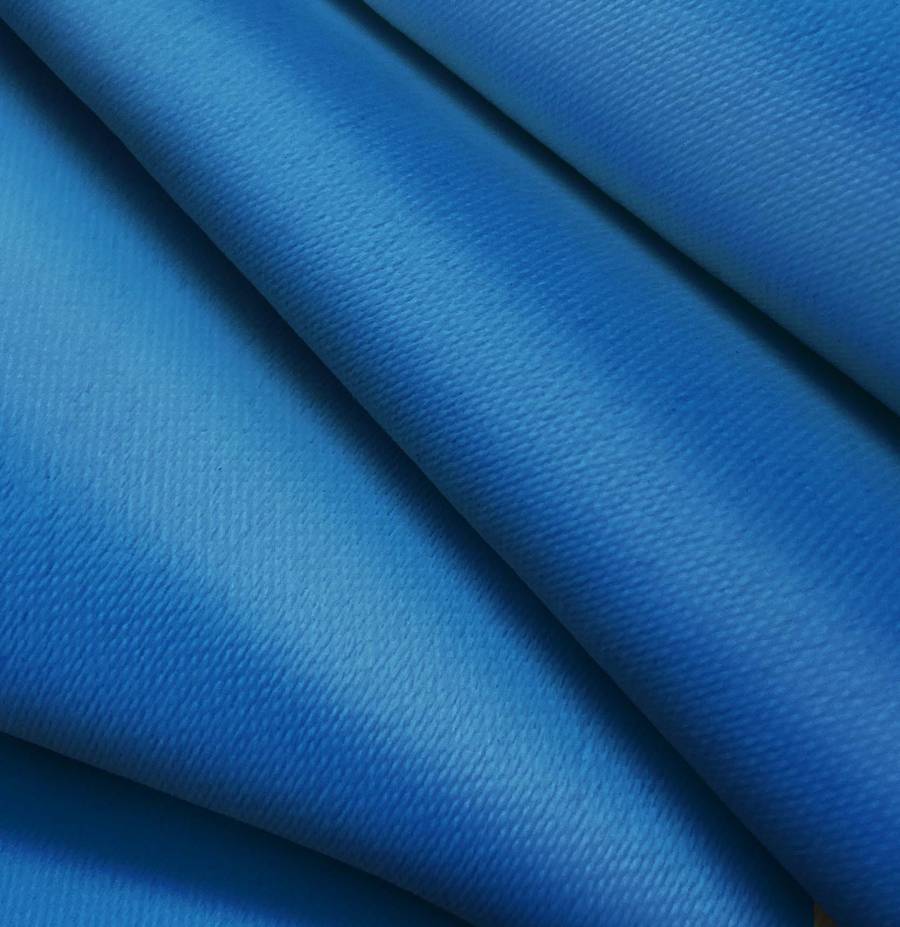 La tela base, Lona Oscurante - White Out, es un tejido técnico de poliéster de 218 gr/m2, con un ancho de 160 cm. El color liso impreso es Azul Arándano, con un CMYK de 94 63 7 0. Este color es profundo y vibrante, combinando tonos de azul intenso con toques de morado y violeta, ideal para transmitir calma y serenidad. Se complementa muy bien con colores neutros como blanco, gris y negro, así como con tonos metálicos como oro y plata.
