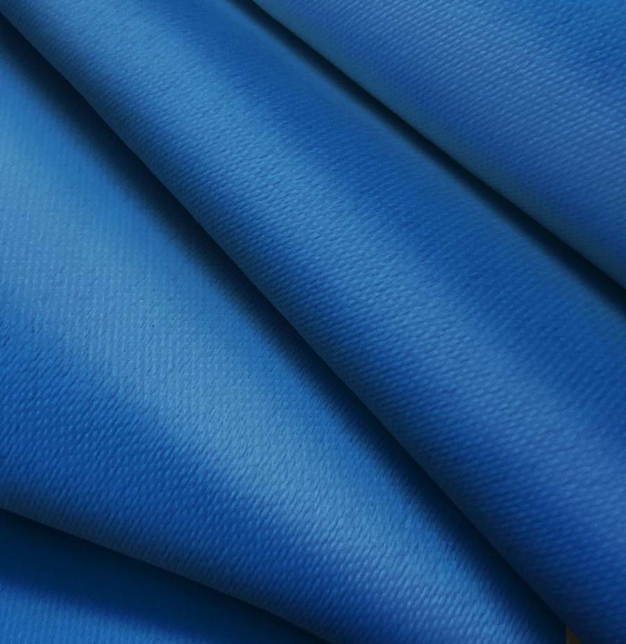 La tela base de este tejido es la Lona Oscurante - White Out, un tejido técnico de poliéster con un gramaje de 218 gr/m2 y un ancho de 160 cm. El color liso impreso es Azul Arándano, con una composición de tinta Cyan 98, Magenta 71, Yellow 11 y Black 1 en formato CMYK. Este color secundario se caracteriza por su tonalidad vibrante y fresca, que combina de manera armoniosa con colores como el blanco, grises suaves y tonos metálicos.