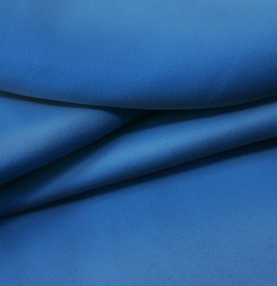 La tela base es Lona Oscurante - White Out, con un color liso impreso en tono Azul Denim Oscuro, reflejando el contenido del CMYK con valores de 100 75 16 3. Este color simboliza la serenidad y la confianza, y combina perfectamente con tonos neutros como blanco, gris y beige, así como con tonos metálicos como dorado o plateado.