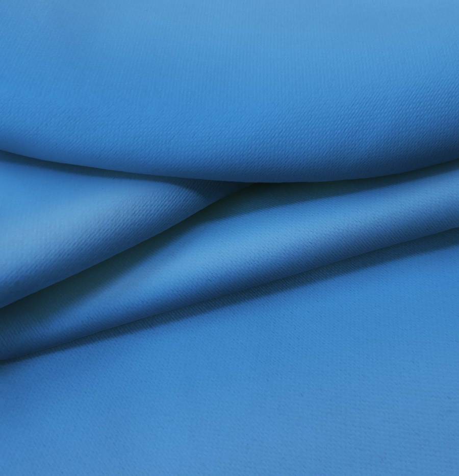 La Lona Oscurante - White Out es una tela base de tejido técnico de 100% poliéster con un gramaje de 218 gr/m2, de color blanco. El color liso impreso es Azul Windows, con una combinación CMYK de 83 54 5 0. Este color simboliza la calma y la serenidad, y combina especialmente con tonos neutros como el blanco, el gris y el beige.