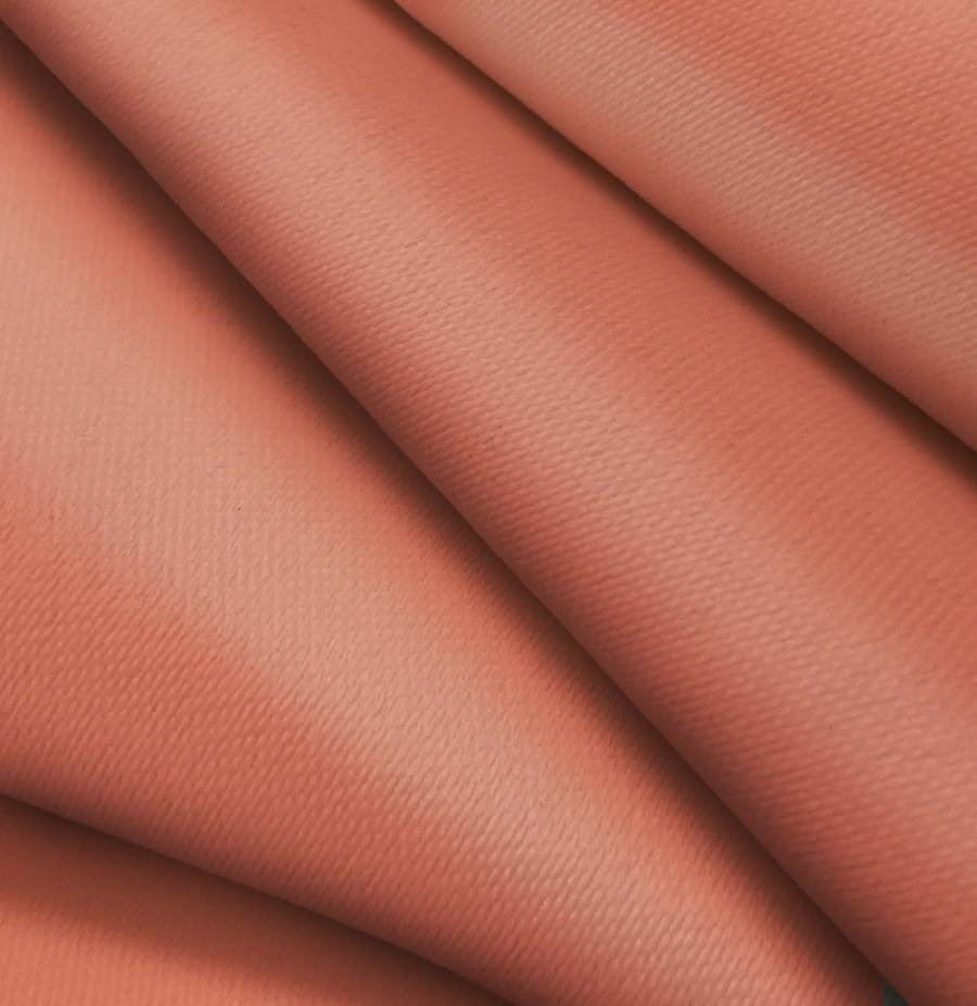 La tela base es Lona Oscurante - White Out con un color liso impreso en rojo cobre, con una composición de 24% de tinta Cyan, 67% de tinta Magenta, 63% de tinta Yellow y 14% de tinta Black, reflejando el CMYK 24 67 63 14. Este color secundario es cálido y vibrante, con una mezcla de rojo y tonos dorados que transmiten elegancia y sofisticación. Combina especialmente bien con tonos neutros como blanco, beige y gris, así como con otros colores cálidos como naranja y marrón.