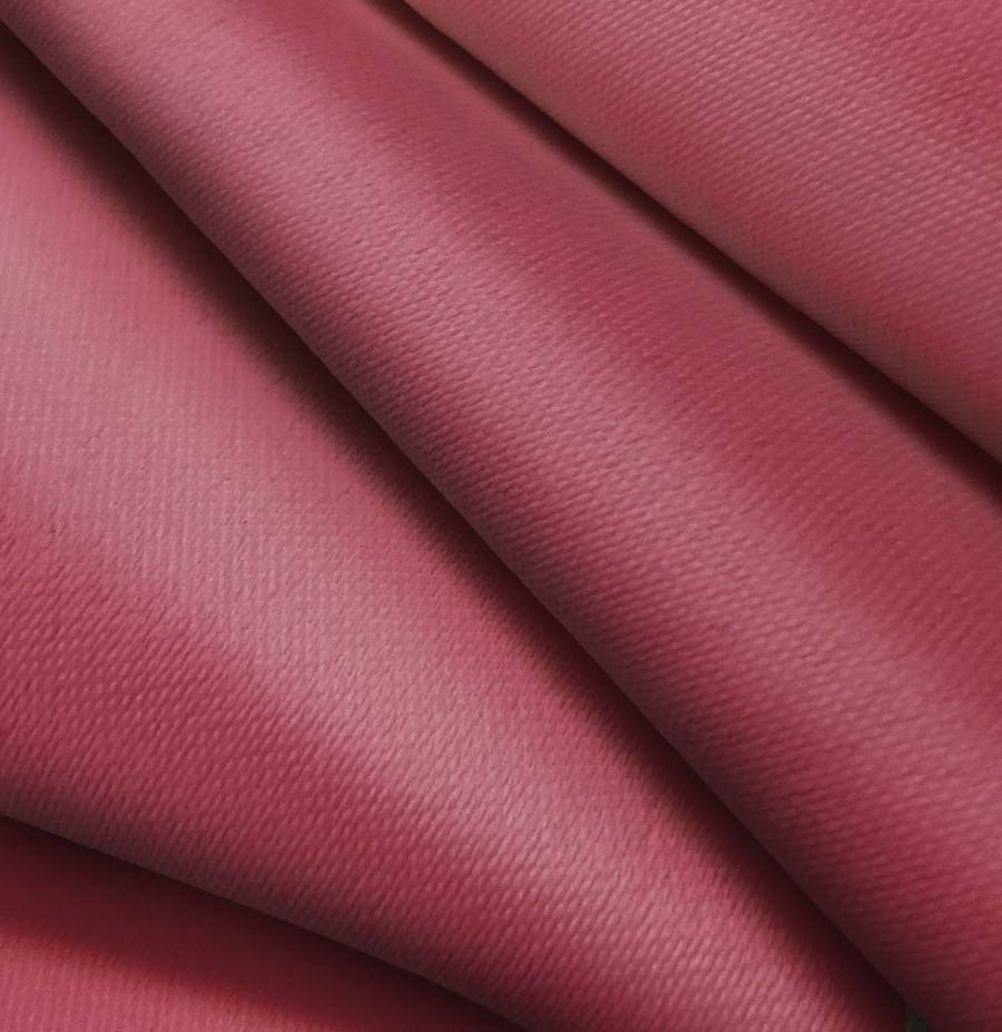 La tela base es Lona Oscurante - White Out, un tejido técnico de poliéster con un gramaje de 218 gr/m2 y un ancho de 160 cm. El color impreso es Rojo Frambuesa, con una combinación de tintas Cyan 28, Magenta 82, Yellow 49 y Black 26 en el CMYK. Este color secundario simboliza la pasión y la energía, y combina especialmente bien con colores neutros como blanco, gris y negro.