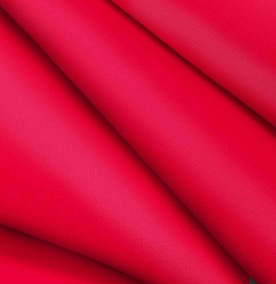 La tela base es Lona Oscurante - White Out, un tejido técnico de 100% poliéster con un gramaje de 218 gr/m2 y un ancho de 160 cm. El color liso impreso es Rojo Carmín, con una combinación de tintas CMYK de 0 100 77 0. Este color se caracteriza por su intensidad y calidez, y se combina especialmente bien con tonos neutros como el blanco, negro y gris.