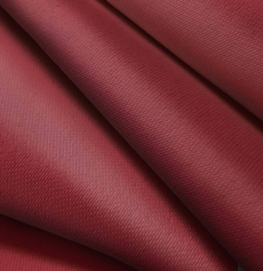 La tela base de la Lona Oscurante - White Out es un tejido técnico de poliéster de color blanco. El color liso impreso es un rojo borgoña con un CMYK de 32 99 75 45, que combina especialmente bien con colores neutros como el gris o el blanco.