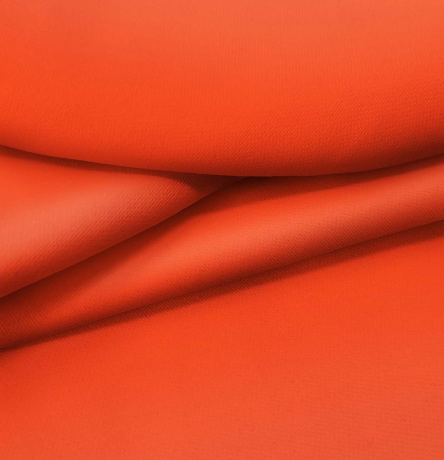 La tela base es una Lona Oscurante en color blanco, impresa con un color liso en tono rojo annato (CMYK: 0 85 87 0). Este color secundario se caracteriza por su intensidad y calidez, combinando perfectamente con tonos neutros como blanco, gris y negro, así como con colores complementarios como el verde y el morado.