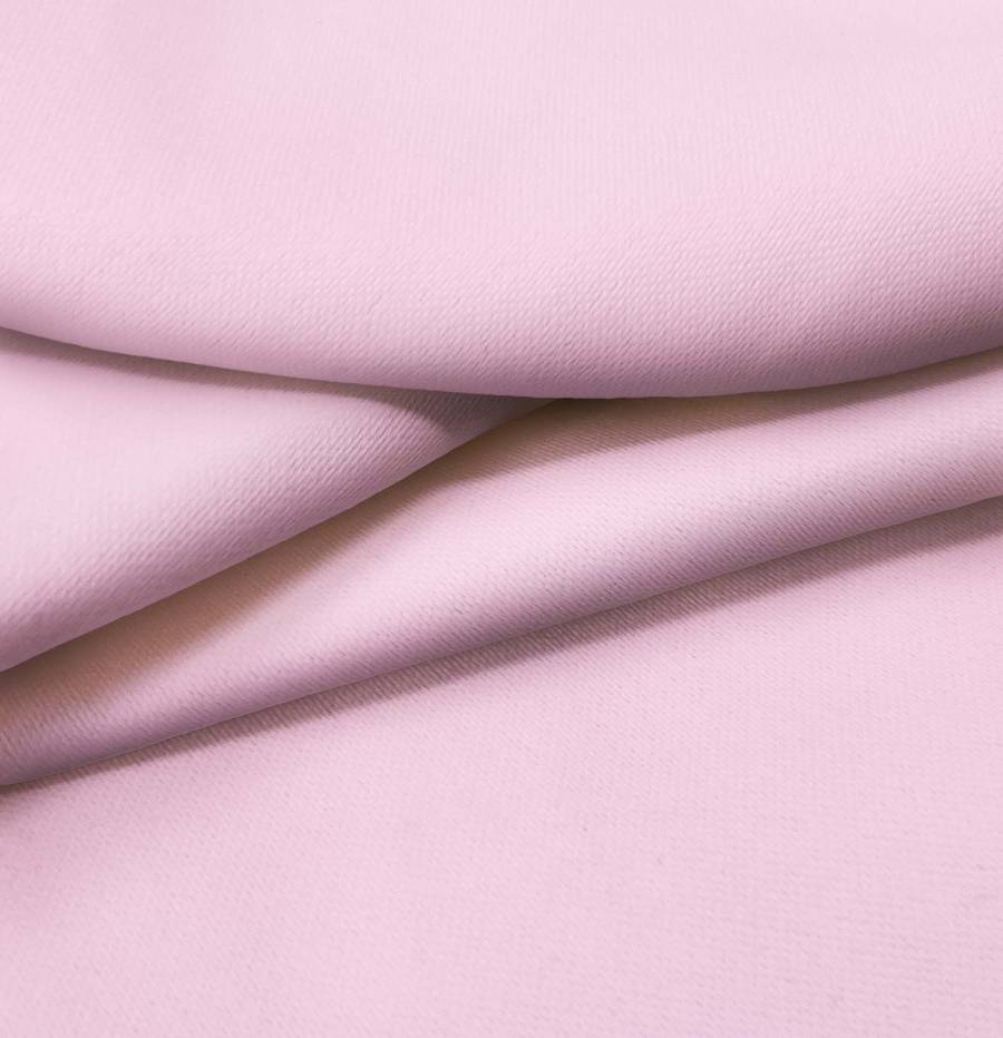 La tela base es la Lona Oscurante - White Out, un tejido técnico de poliéster con un gramaje de 218 gr/m2 y una composición del 100% POLIÉSTER. El color liso impreso es Rosa Algodón Azucarado, con un CMYK de 0 37 0 0. Este color secundario simboliza la dulzura y la suavidad, y combina especialmente bien con tonos pastel como el blanco, el beige y el gris.