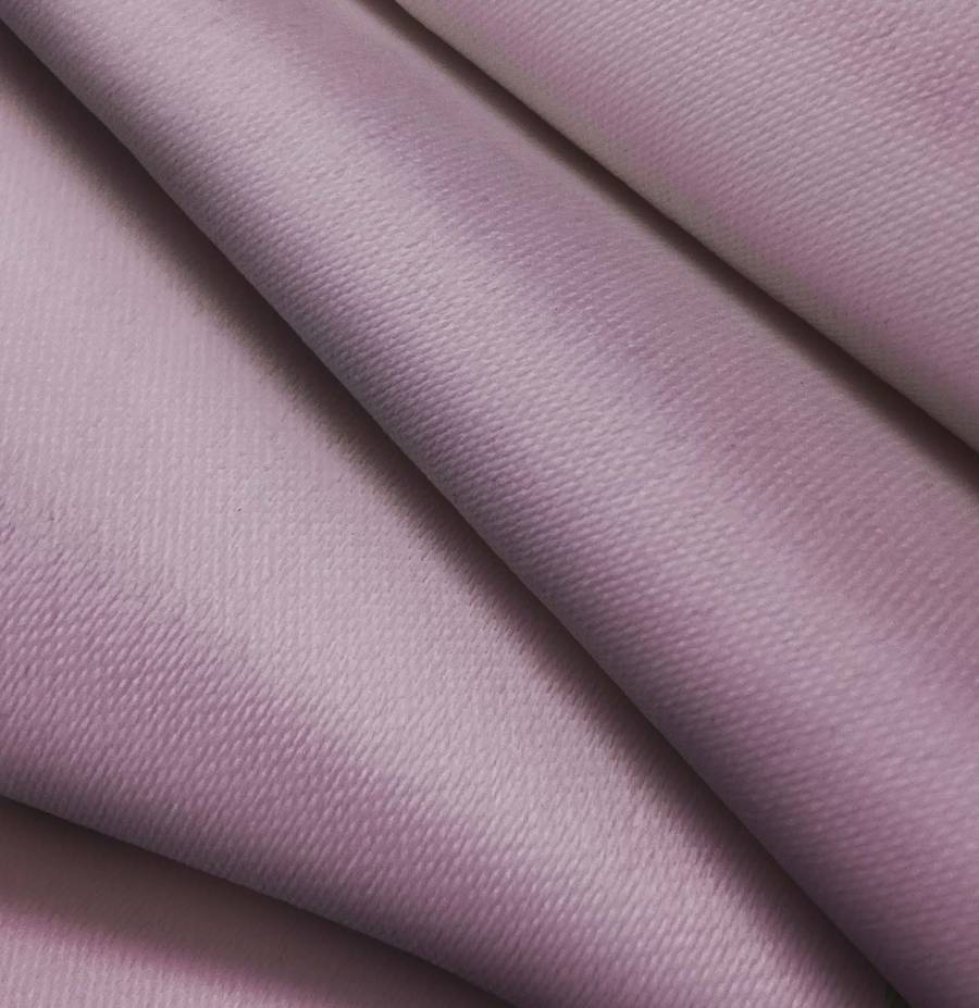 La tela base es una Lona Oscurante de color blanco impreso con un tono rosa Mountbatten, con un CMYK de 42 52 29 11. Este color secundario es ideal para transmitir amor, calidez y dulzura, combinando perfectamente con tonos neutros como el blanco, gris y beige.