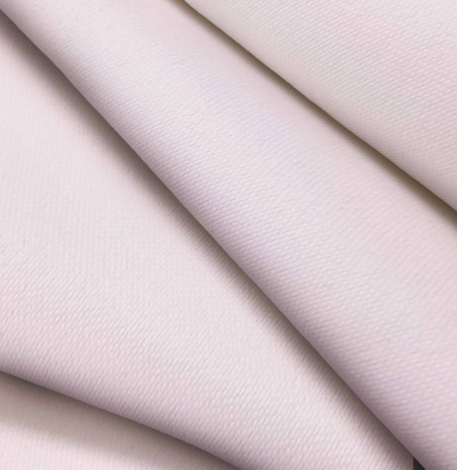 La tela base, Lona Oscurante - White Out, es un tejido técnico de poliéster con un gramaje de 218 gr/m2 y un ancho de 160 cm. El color liso impreso es Rosa Reina, con una mezcla de 9% de tinta Cyan, 24% de tinta Magenta, 9% de tinta Yellow y 0% de tinta Black, reflejando el CMYK 9 24 9 0. Este color secundario simboliza la delicadeza y la feminidad, combinando a la perfección con blanco, gris, negro y dorado. La tela está impresa a una sola cara por impresión digital textil.