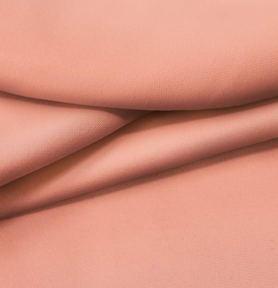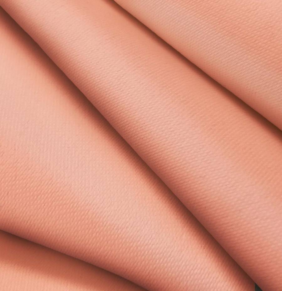 La tela base de este tejido es la Lona Oscurante - White Out, un tejido técnico compuesto por 100% poliéster con un gramaje de 218 gr/m2 y un ancho de 160 cm. El color liso impreso es de tonalidades rosa y salmón, con una combinación CMYK de 0 58 50 0, lo que le da un aspecto cálido y suave. Este color secundario combina especialmente con tonos neutros como beige, gris y blanco, potenciando así su delicadeza y elegancia.