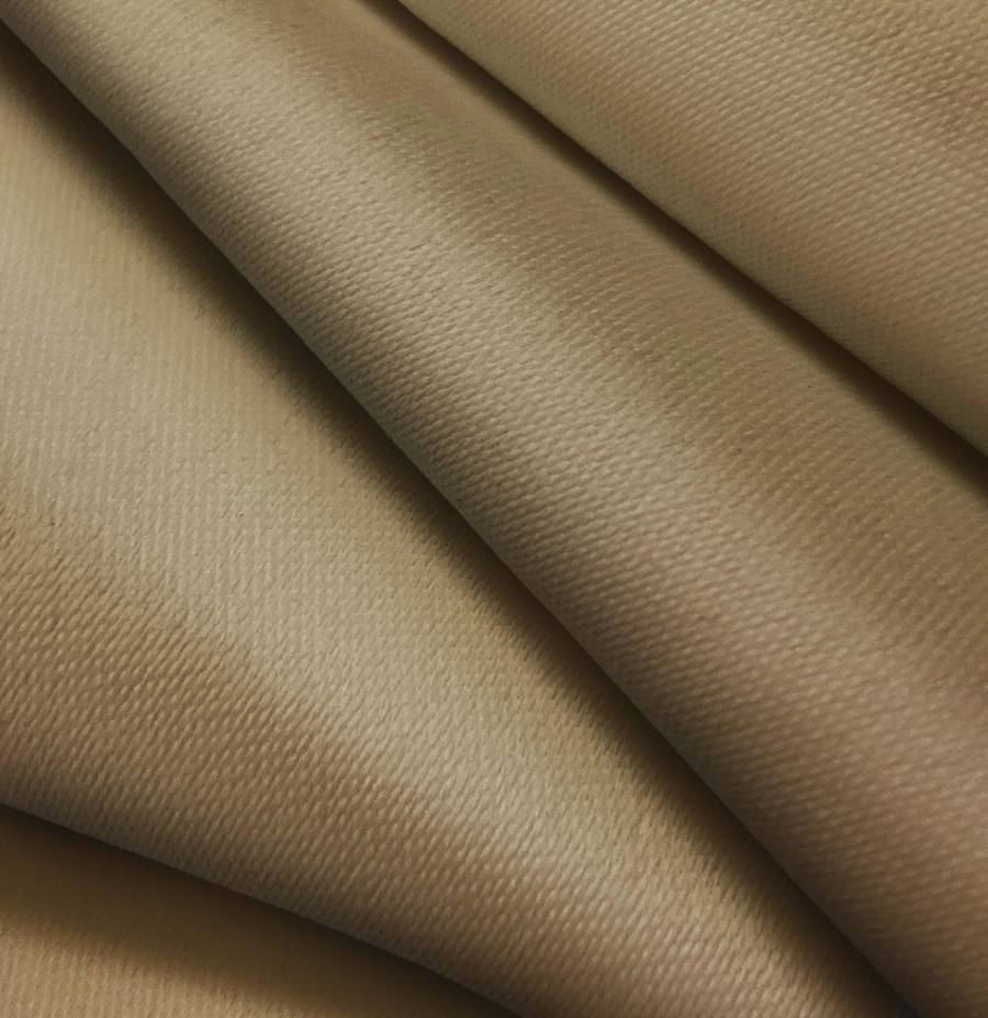 La tela base es Lona Oscurante - White Out, un tejido técnico de poliéster con un gramaje de 218 gr/m2. El color liso impreso es Marrón Bistre Francés, representado por un CMYK de 38 45 65 33. Este color simboliza la tranquilidad y la estabilidad, combina especialmente bien con tonos neutros como beige o blanco.