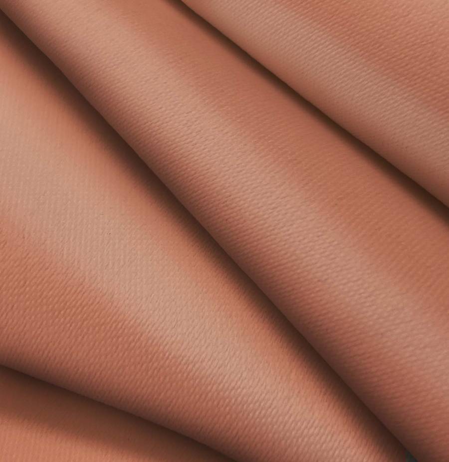 La tela base es Lona Oscurante - White Out, un tejido técnico de poliéster con un gramaje de 218 gr/m2 y un ancho de 160 cm. El color liso impreso es Marrón Cuero Viejo, con una combinación CMYK de 29 60 61 25. Este color simboliza la elegancia y la calidez, y combina especialmente bien con tonos tierra y verdes, creando una paleta armoniosa y acogedora.