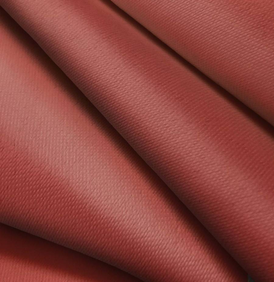 La tela base, Lona Oscurante White Out, es un tejido técnico de 100% poliéster con un gramaje de 218 gr/m2, de color marrón sangre con un CMYK de 29 83 74 30. Este color simboliza la calidez y la pasión, combinando a la perfección con tonos neutros como grises y blancos.