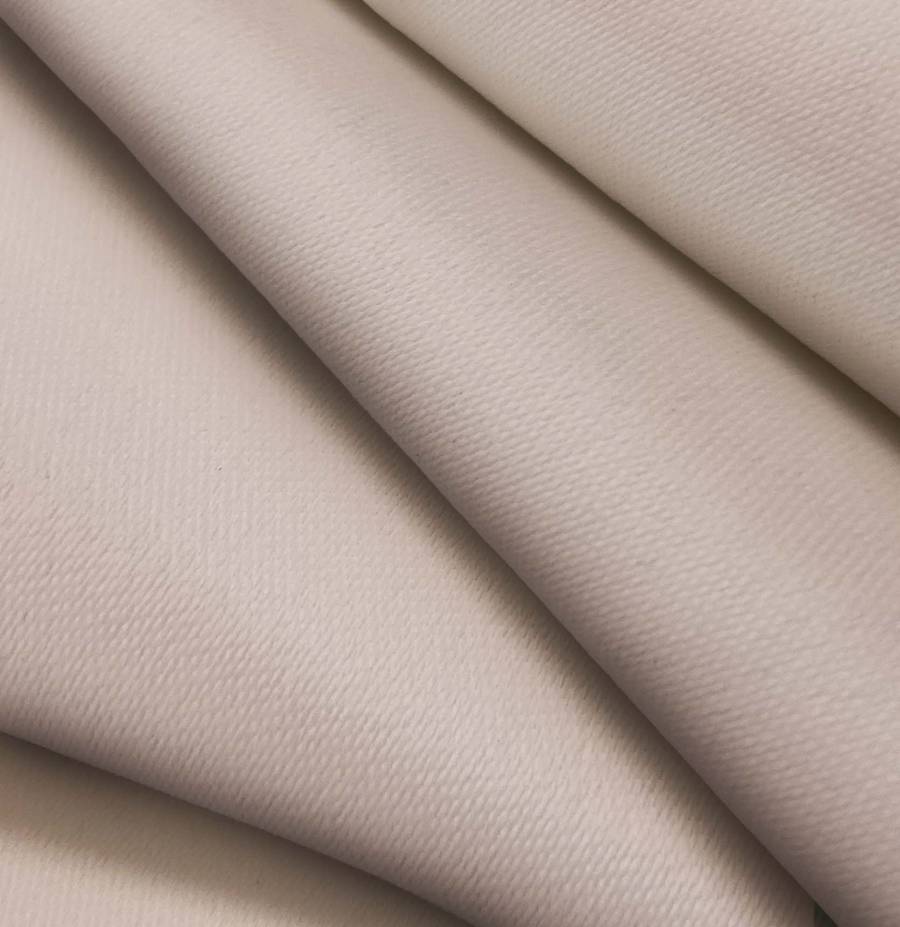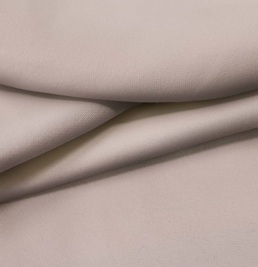 La tela base es Lona Oscurante de color White Out, con un CMYK de 31 36 36 13, predominando los tonos marrón y plata pálida. Este color se combina especialmente bien con tonos neutros como el blanco, gris y negro.