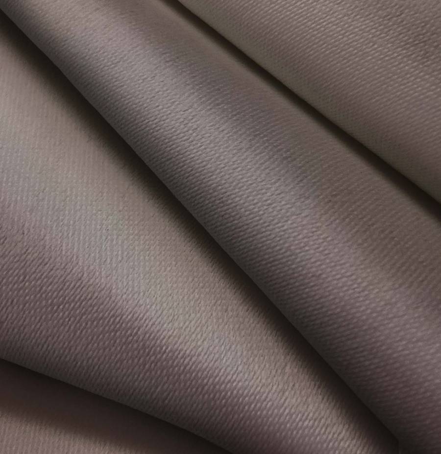 La tela base es Lona Oscurante - White Out, de 100% poliéster, con un gramaje de 218 gr/m2 y un ancho de 160 cm. El color liso impreso es Marrón Wengué, con un CMYK de 50 53 49 44. Este color combina muy bien con tonos tierra y neutros, aportando calidez y elegancia.