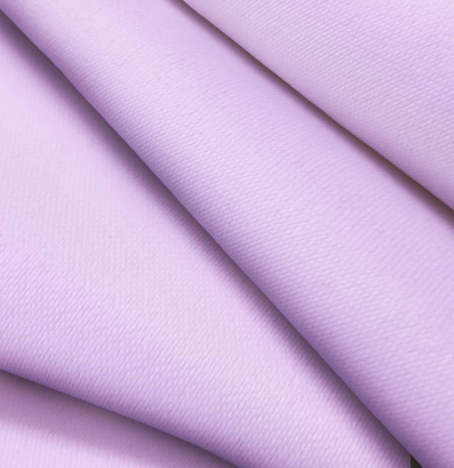 La tela base es una Lona Oscurante de color blanco impoluto, con un color liso impreso de Morado Malva Antiguo, representado por el CMYK 22 36 0 0. Este color se caracteriza por ser suave, elegante y relajante, combinando particularmente bien con tonos neutros como blanco, beige y gris.