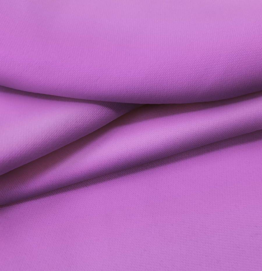 La tela base es una Lona Oscurante de color blanco impreso con un tono morado intenso, reflejando un CMYK de 44 72 0 0. Este color evoca la creatividad, la espiritualidad y la realeza. Se combina especialmente bien con colores neutros como blancos, grises y negros para lograr un contraste elegante y moderno.