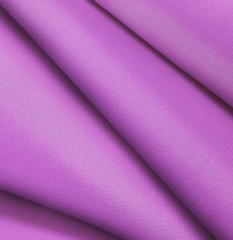 El tejido está impreso con el color liso morado a una sola cara por impresión digital textil, lo que le otorga una alta calidad y durabilidad en el color y el diseño. La tela base de este tejido es de tipo tejido técnico de poliéster, con una textura lisa, rígida y opaca.