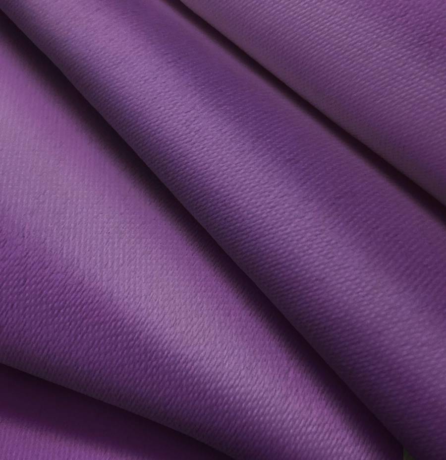 La tela base es la Lona Oscurante - White Out, un tejido técnico de 100% poliéster con un gramaje de 218 gr/m2 y un ancho de 160 cm. El color liso impreso es Morado Imperial, con un CMYK de 72 93 24 13. Este color es un tono profundo, real y que transmite elegancia. Se combina especialmente bien con colores cálidos como el amarillo y el naranja, así como con tonos neutros como el gris o el blanco.