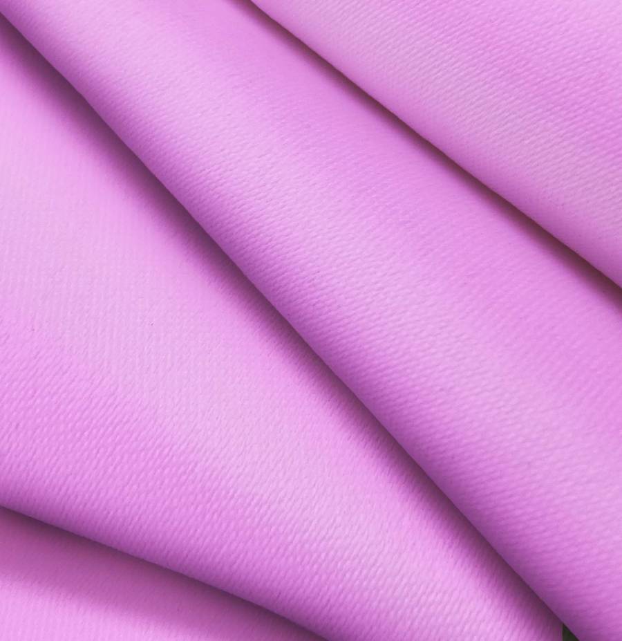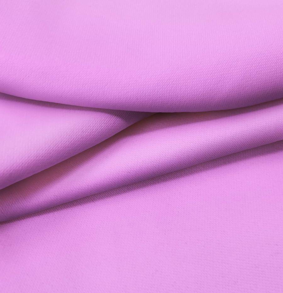 La tela base de esta descripción es una lona oscurante en color blanco, con un gramaje de 218 gr/m2 y una composición de 100% poliéster. El color liso impreso es morado pastel, representado por un CMYK de 25 55 0 0. Este color simboliza la tranquilidad, la creatividad y la espiritualidad, y combina especialmente bien con tonos neutros como blancos, grises y negros.