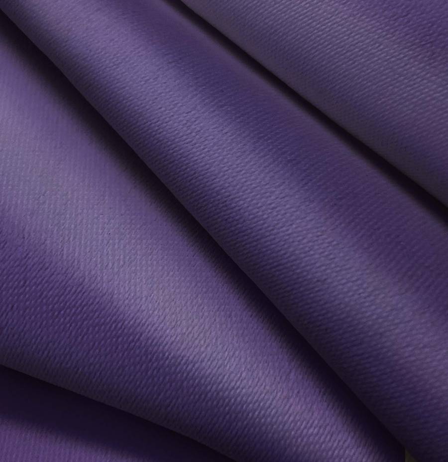 La tela base es Lona Oscurante - White Out, un tejido técnico de poliéster con un gramaje de 218 gr/m2, de color liso impreso en Morado Ultramar con un CMYK de 88 94 29 24. Este color secundario es una mezcla de tonos púrpura y azul intenso, que evoca sensaciones de calma, creatividad y misterio. Combina especialmente bien con tonos neutros como blanco, beige o gris, pero también con colores vibrantes como rosa, amarillo o verde.