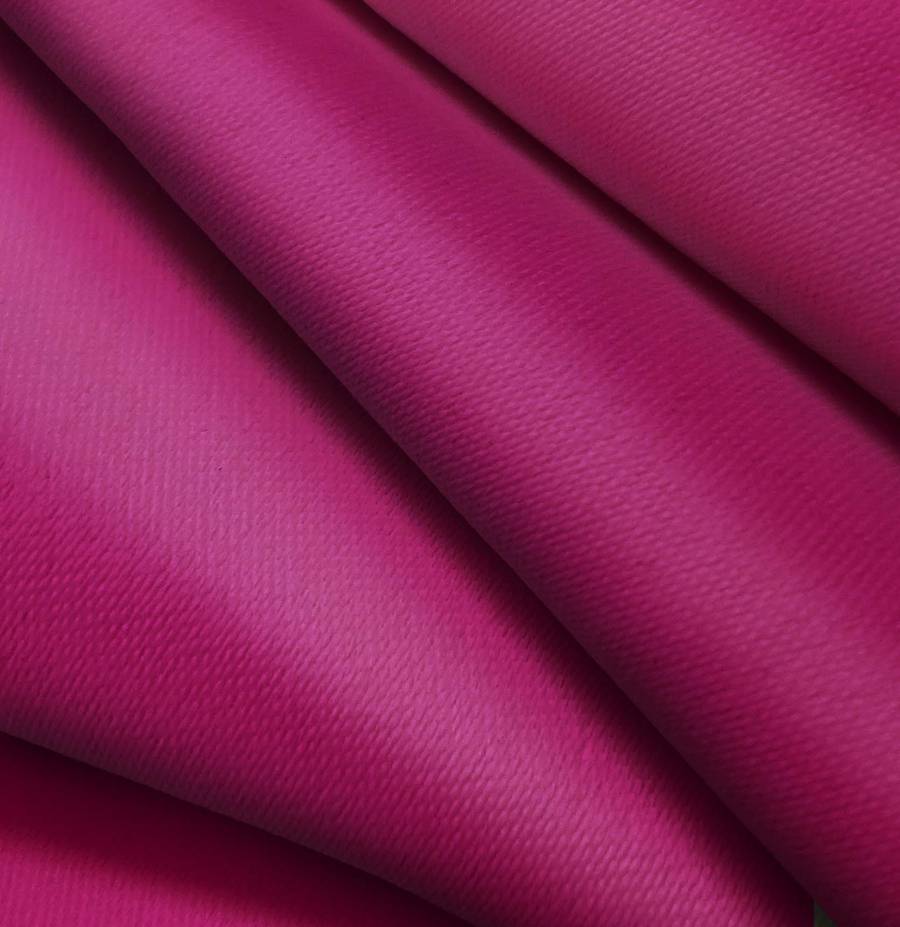 La tela base es Lona Oscurante - White Out, con un color liso impreso en tonos morado rojizo con un CMYK de 33 100 28 25. Este color simboliza la pasión y la creatividad, combinando perfectamente con tonos neutros como el blanco, gris y negro.