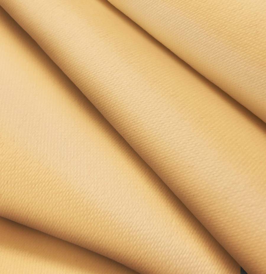 La tela base, Lona Oscurante - White Out, es un tejido técnico de 100% poliéster con un gramaje de 218 gr/m2 y un ancho de 160 cm. El color impreso es Naranja Mandarina Claro, con un CMYK de 0 40 60 0. Este color simboliza la energía y la creatividad, combinando a la perfección con tonos neutros como el blanco, el gris y el negro.