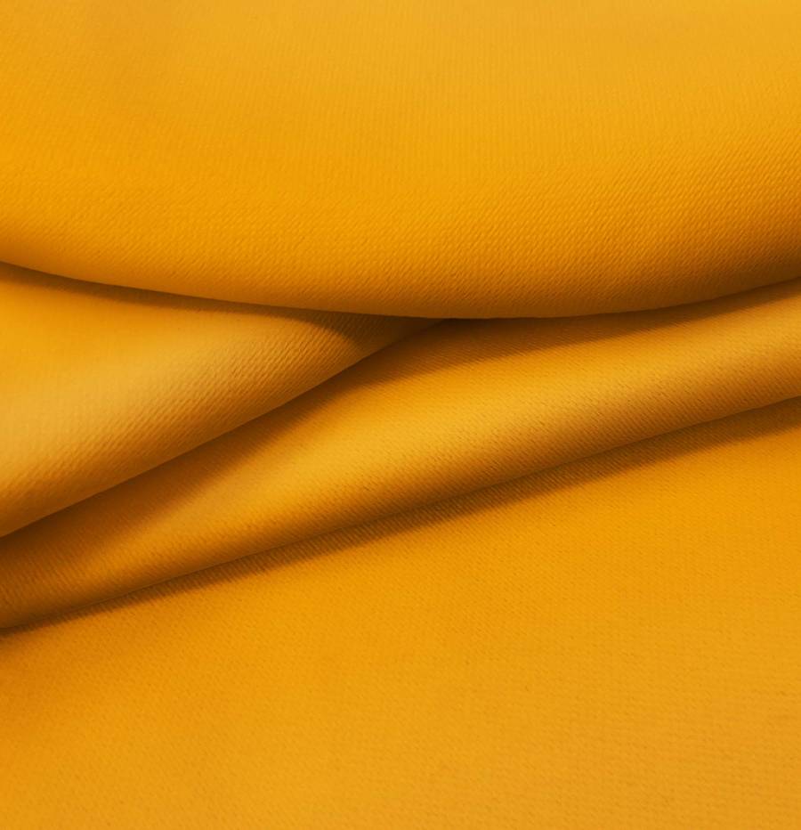 La tela base está impresa con el color naranja de forma digital textil a una sola cara, lo que le confiere una apariencia vibrante y duradera. Sus características generales incluyen una textura lisa y rígida, así como una opacidad que garantiza la privacidad cuando se utiliza en cortinas o toldos.