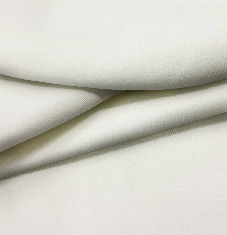 Las características generales de la tela base son su textura lisa y rígida, con un tacto opaco. El color amarillo claro impreso le agrega luminosidad y calidez al tejido. La combinación de la base blanca con el color impreso crea un contraste llamativo y moderno.