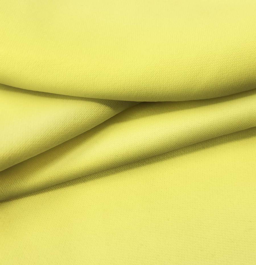 La tela base es la Lona Oscurante - White Out, con un color liso impreso en tono Amarillo Maíz (CMYK: 5 0 73 0). Este color vibrante combina perfectamente con tonos neutros como el blanco, el gris y el negro, resaltando su luminosidad y alegría.