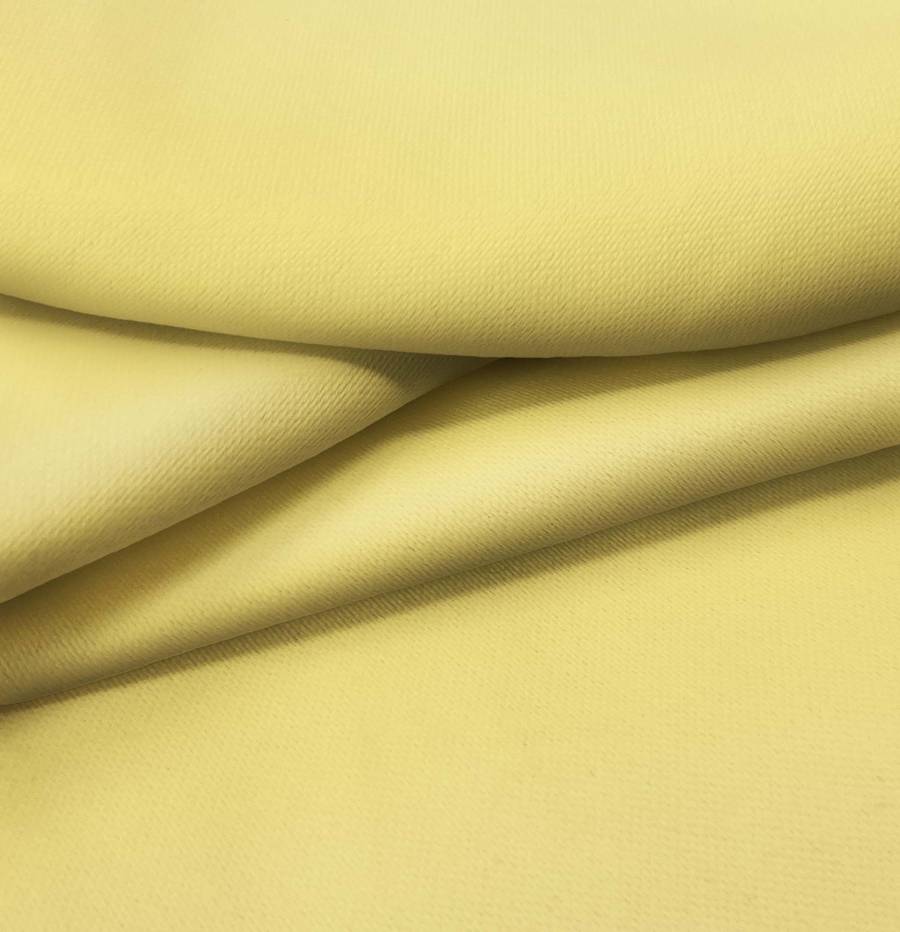 La tela base es una Lona Oscurante - White Out, de tipo Tejido Técnico 100% poliéster, con un gramaje de 218 gr/m2 y un ancho de 160 cm. El color liso impreso es Amarillo Nápoles, con un CMYK de 10 18 67 1. Este color amarillo suave se caracteriza por su calidez y luminosidad, perfecto para transmitir alegría y energía. Combina especialmente bien con tonos neutros como blancos, grises y beige.