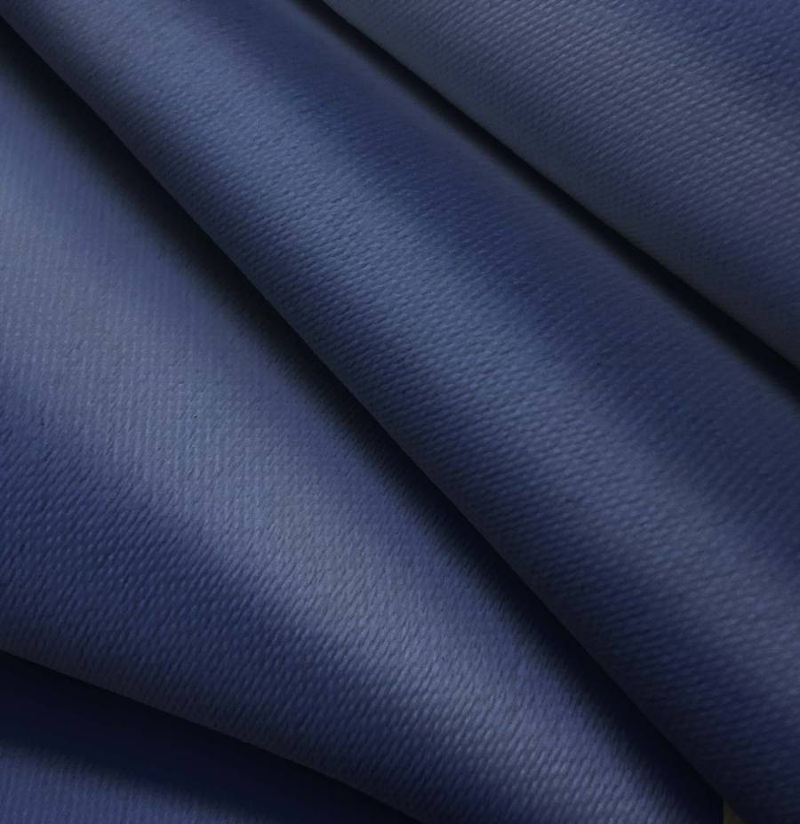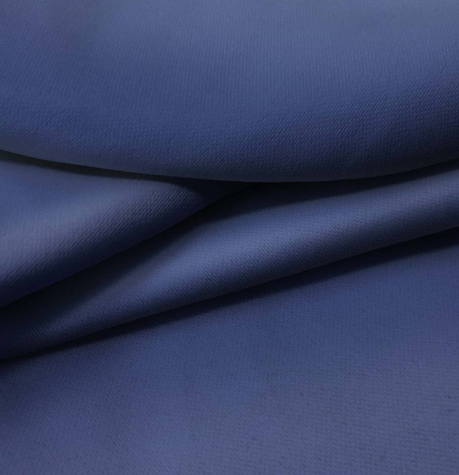 La tela base, Lona Oscurante White Out, es un tejido técnico de poliéster con un gramaje de 218 gr/m2 y ancho de 160 cm. El color liso impreso es Azul Profundo, con un CMYK de 100 88 38 35. Este color simboliza la profundidad y la serenidad, combinando a la perfección con tonos neutros como blanco y gris.