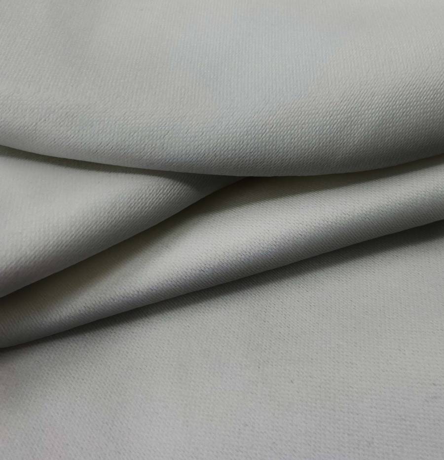 La tela base es Lona Oscurante - White Out, de color liso Gris Acorazado (CMYK: 48 37 39 19), que combina tonos de gris y azul oscuro. Impresa a una sola cara por impresión digital textil, resalta su tacto rígido y opaco.
